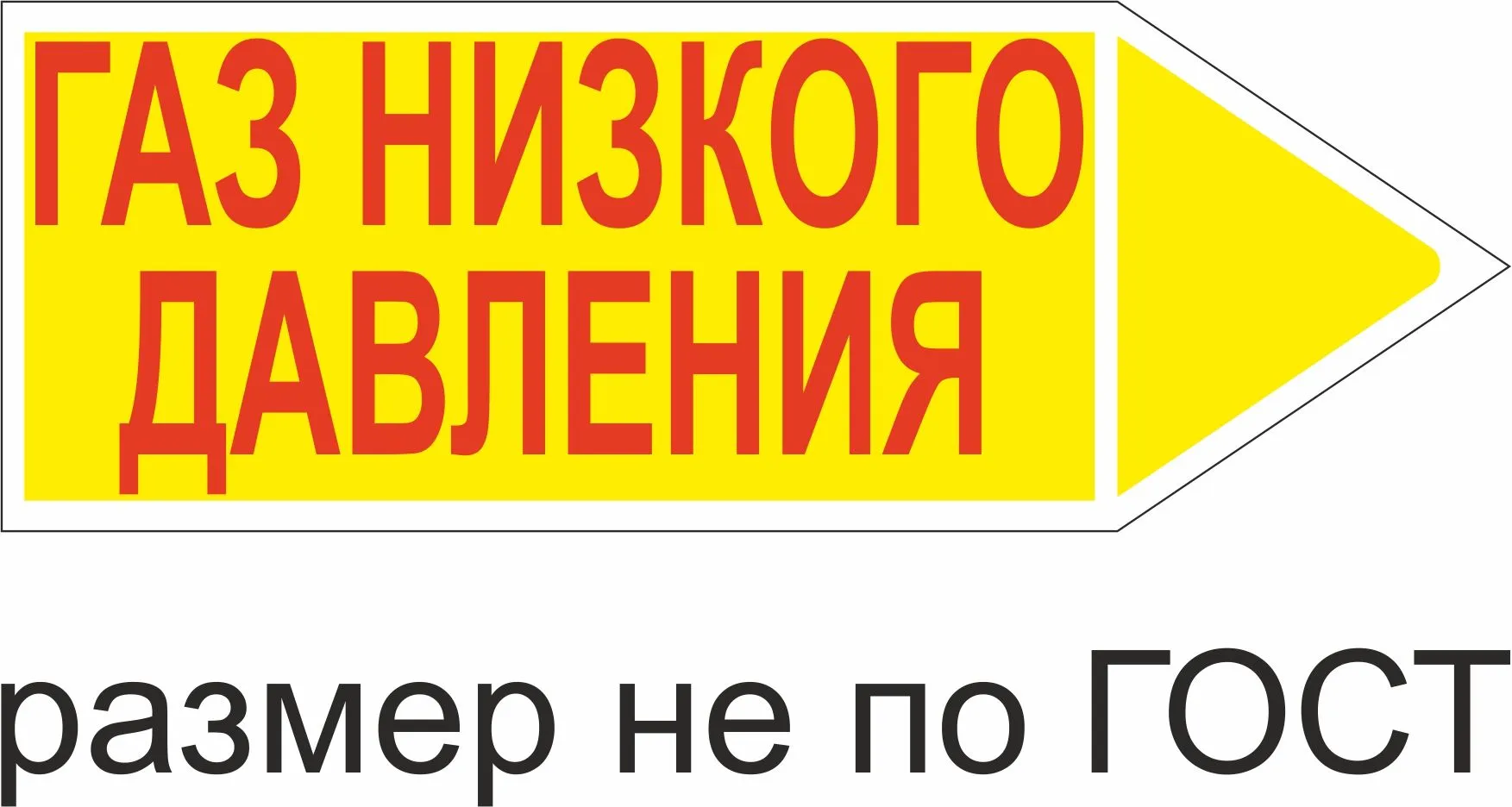 Маркер самоклеящийся Газ низкого давление 148х420 мм, фон желтый, буквы красные, направо