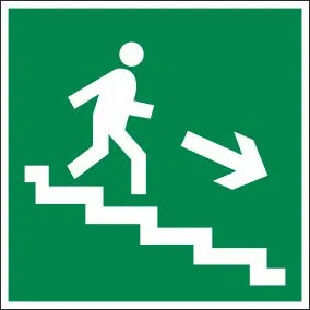 Знак E13 Направление к эвакуационному выходу по лестнице вниз, 200х200 мм, на пленке фотолюминесцентной второго типа самоклеящейся полимерной ГОСТ 12.4.026-2015