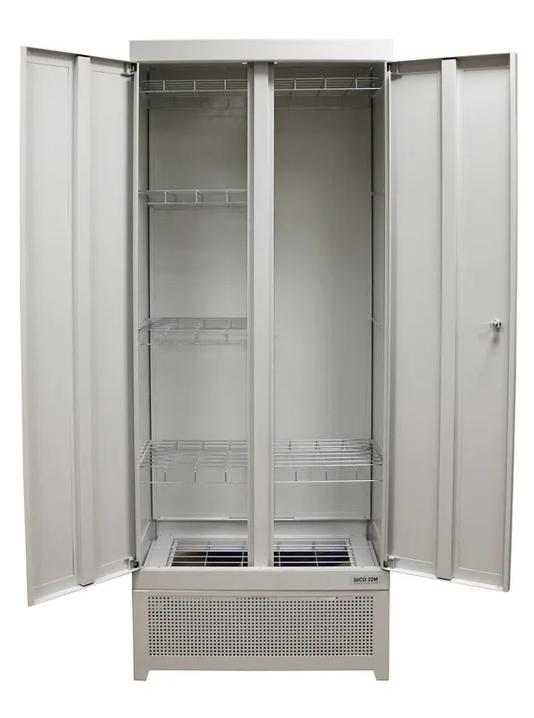 Внутри каждая секция снабжена тремя подвесными сетчатыми полками. На полки можно укладывать для сушки рукавицы, головные уборы или обувь.
